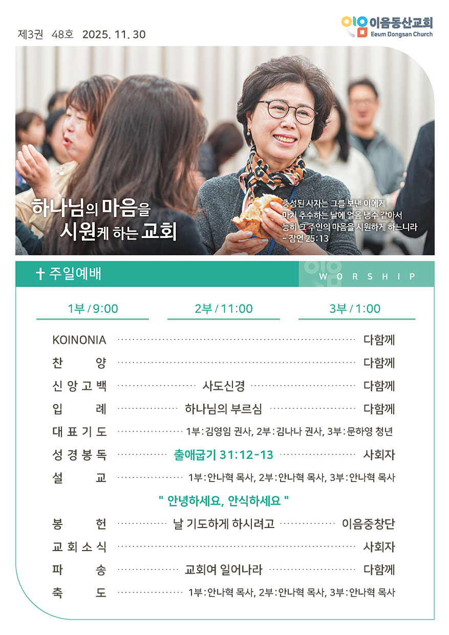 • 2025년 11월 16일 주일예배 주보
